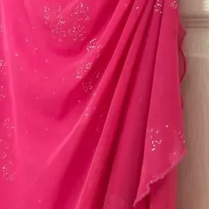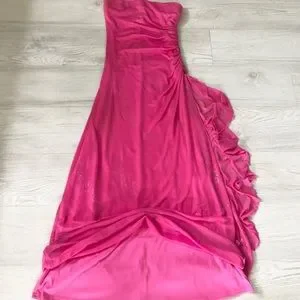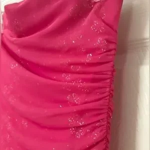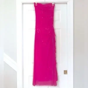 Vintage City Triangles Hot Pink Glitter Ruched Gown Dress with side Ruffles