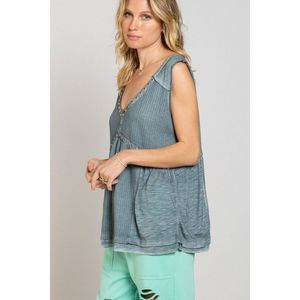 POL CLOTHING V-neck Tank Top with Stud Trim Ocean Teal Summer Spring New TKT709
