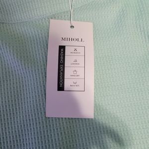NWT Miholl Women's M Waffle Knit Top Aqua Green