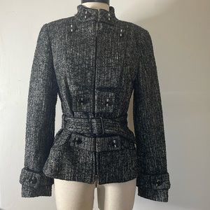 Anne Fontaine Tweed Zip Up Jacket Pockets Size 38 US 4