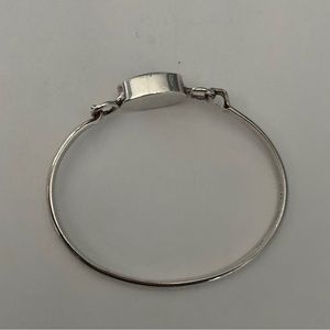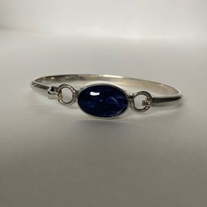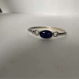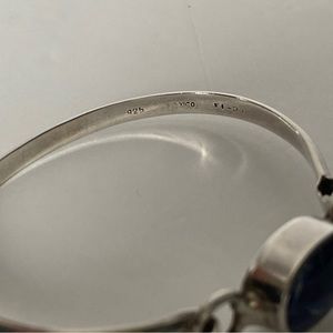 Vintage sterling silver and blue lapis bangle bracelet. Hook closure. Stamped 925 Mexico.