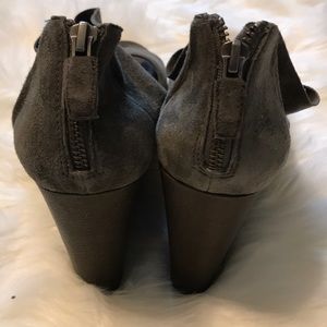 Reposhing this item I purchased from @music_maven. These are gorgeous shoes and I've never worn them. I cannot wear heels anymore. They are a nice dark Charcoal grey and true to size. I know they were VERY comfortable when I tried them on. They've not left the closet since. No marks, soles are spotless. Tags still in bottom. Suede straps are soooo soft!