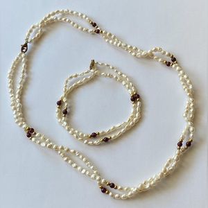 Vintage White Pearl & Amethyst Gemstone Double Strand Necklace and Bracelet Set