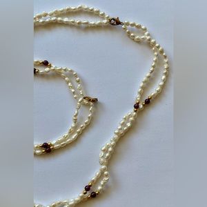 Keywords: pearl and amethyst set, double strand necklace, gemstone jewelry, vintage estate jewelry, pearl bracelet, amethyst necklace, elegant jewelry set, classic pearls, statement jewelry.