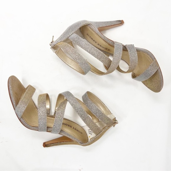 Audrey Brooke Gold Metallic Sparkly AB Shanice Wide Strappy Heels Sz 8.5