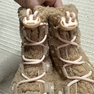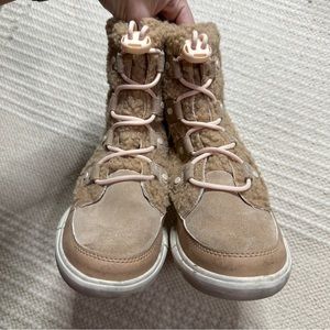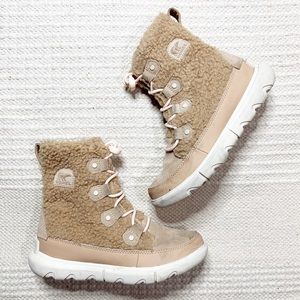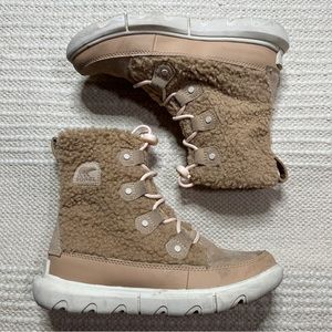 SOREL girls' tan Youth Explorer Cozy Canoe sherpa lace up boots 4