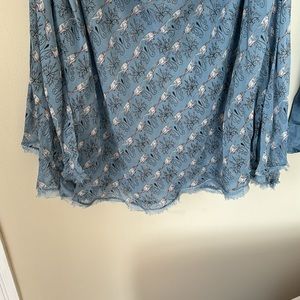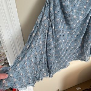 Women’s size Medium M. this is a gorgeous Max Studio Special Edition blue 100% silk lined tank dress. The lining dress is completely separate. The pattern is pink, white and black birds. The sides are ruched and the bottom is very flowy. Perfect for wedding guest or cocktail party. Smoke free home. Feel free to bundle or make me an offer.