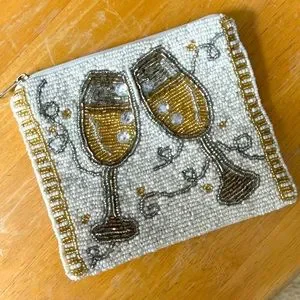 Hand-beaded Pouch/Coin Purse with Champagne Flutes