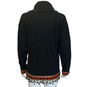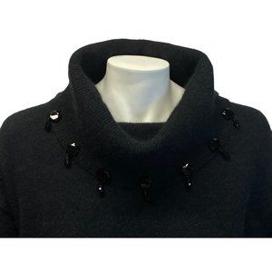 Vintage Black 80s Beaded Sweater Long Cowl Neck Size M Embellished SPREE Intl