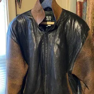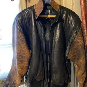 Vintage 80's Fog City Leather Two Tone Black/Brown Bomber Jacket, made in the USA