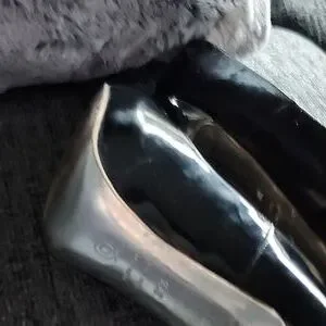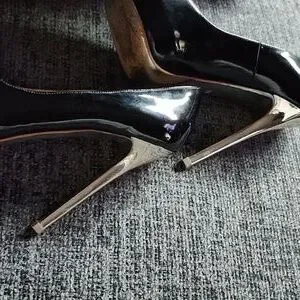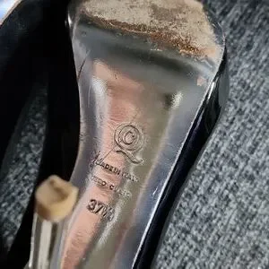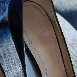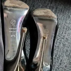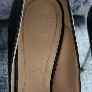 McQ Alexander Mcqueen Heart peep toe platform heels. Black with silver heel