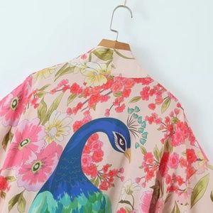 Boho Floral Tropical Peacock Print Cover up Kimono