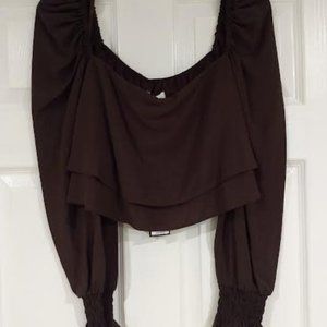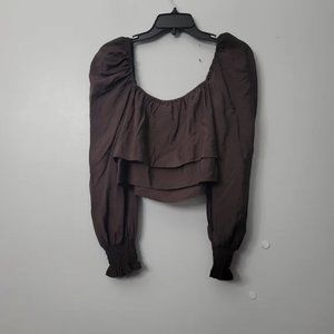 Gianni Bini Mila Drapey Viscose Square Neck Long Sleeve Woven Blouse Size xs