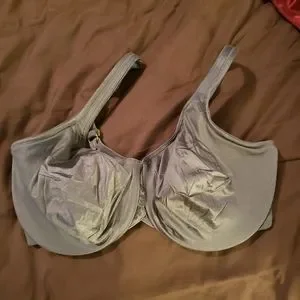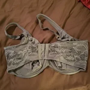 3- bras size 40DD / 40E All have Underwire. (1) is a lightly used Delta Burke brand Brown Animal Print lightly padded , (1) lightly used Gray Lilyette brand Smooth soft cup, rear lace bra and (1) Olga White soft cup, new with tags bras