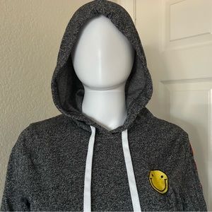 Joe Boxer Heather Grey/Black Pullover Hoodie with smiley face long Sleeves - S
