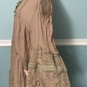 Size large, Boho dress/long top, flowy, lacy, earthy aesthetic
