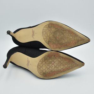 Jewel Badgley Mischka Eva Pointed Toe Black Sparkly Heeled Ankle Booties, Size 7