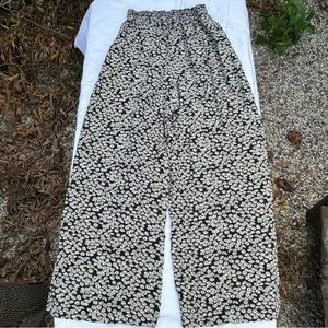 SOLD Vintage 90s Style Neiman Marcus Floral Wide Leg Silk Pants Boho Flowy Daisy