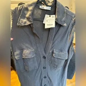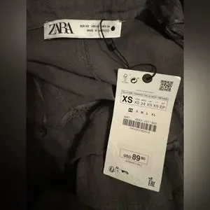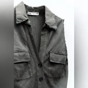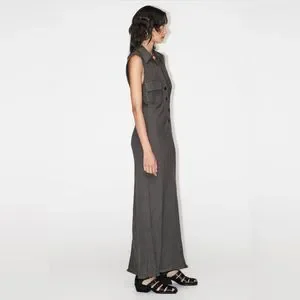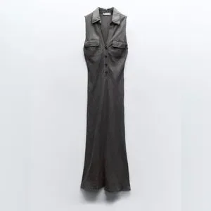 New ZARA LINEN SHIRTDRESS size XS S long Midi 100% linen Sleeveless V-neck dress