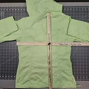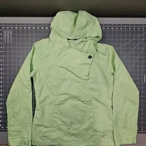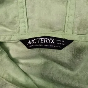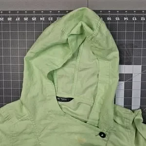 Arc'teryx C'esta Linen Hoodie women's size medium in yellow. There's a slight discoloration spot on the Bib of the shirt. The photo actually looks worse than it does in real life. See the last pic. 1423