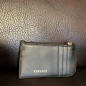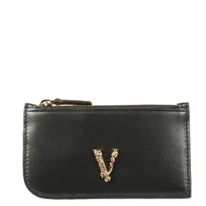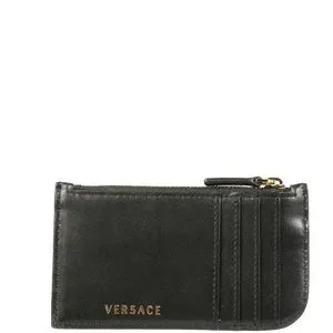 Versace unisex zip up keychain Virtus logo leather card holder wallet NWB