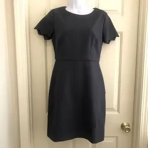 Loft Short Sleeve Scalloped Sheath Dress. Dark gray. Scallop details. wrapped skirt. Lined on top. Zipper in back. Fabric has some stretch. Excellent condition