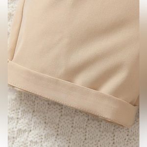 Baby boy bow front shirt and suspender shorts set. Size: 18-24 months. Color: green/tan. Fabric: polyester. Condition: preowned, excellent. No rips, stains, tears or fading.