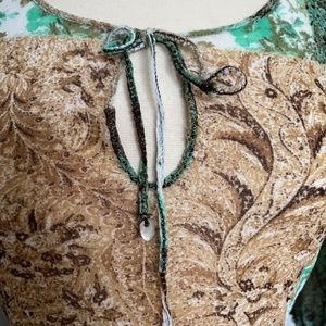 Roberto Cavalli Class Mesh 3/4 sleeves Parsley Floral cheetah Print Top Beach