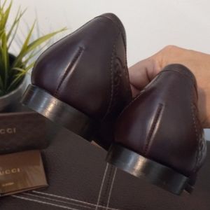 authentic New Gucci brown leather Guccissima fringe loafers.