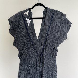 Anthropologie Avec les Filles Dress Women Medium Blue Polka Dot Ruffle Pockets