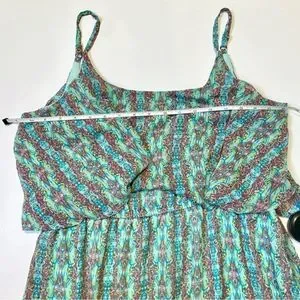 Christine V Printed Mint Green Chiffon Flowy Maxi Dress Tribal Pattern Size M