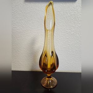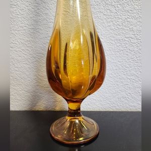 Vintage Viking Swung Glass Amber Pedestal Vase