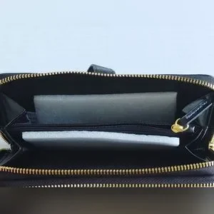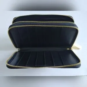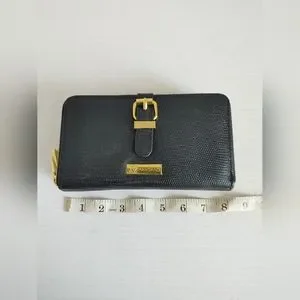 Joy Mangano Womens Leather Double Zipper Wallet Large Black