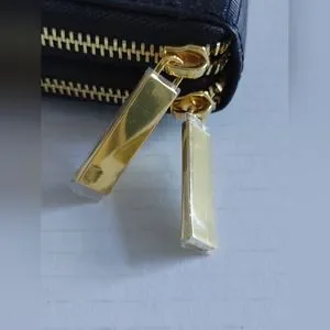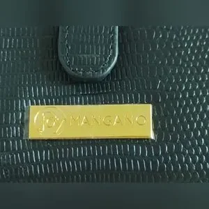 Joy Mangano womens double zip large rectangular shaped wallet. Leather lizard skin texture on the outside. Features multiple card slots and a zipper in the inside perfect for coins. Solid faux buckle snap closure. Goldtone oversized zipper pulls.