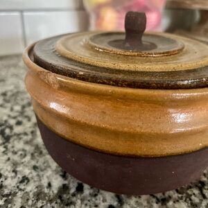 Earthenware Ceramic Dark and Golden Brown Bowl with Lid Hand thrown Clay Decor