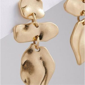 Beautiful hammered drop earrings with a shiny gold metal finish. Stone henge. Tribal. Casual. Dressy.