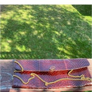 BROWN & Wine Snake Skin Clutch w/10.5” Gold Link Chain