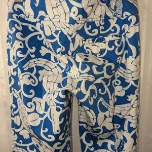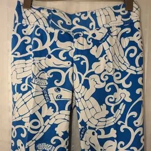 LILLY PULITZER Pants Blue White Print size 4 Beautiful Summery Print Alligator