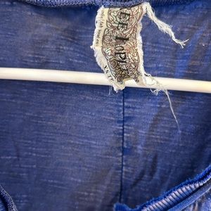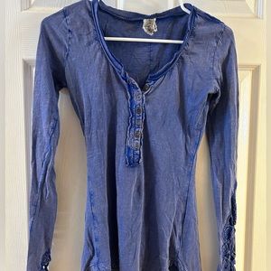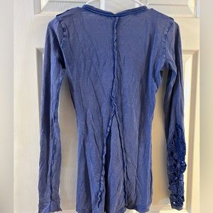 This vintage free people long sleeve has such great details. Button up Henley front, seam down back, crochet detail at bottom of sleeves, in a washed blue color.