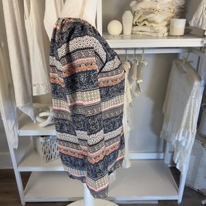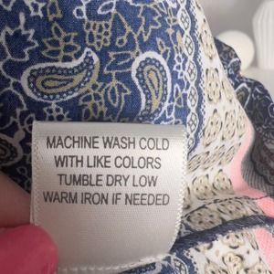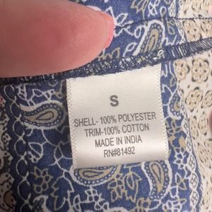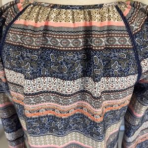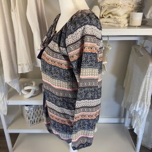 Tanzara sz. small boho paisley graphic print top, keyhole neck embroidered #2263