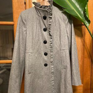 Covington grey wool blend frill short pea coat, size S