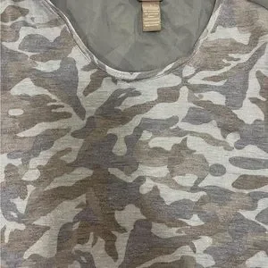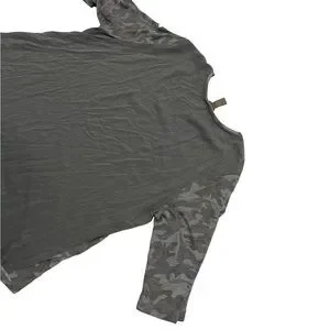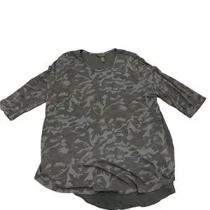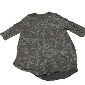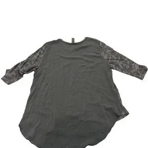 Back is slightly longer than front, 3/4 sleeves. Back is plain, super soft Camo top.