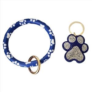 NWT Rhinestone crystal puffy paw print keychain/purse charm, on a coordinating paw print bangle wristlet. Makes hard-to-find keys easy to grab in your purse, or can be worn as a bangle to keep your hands free. Easily separated into 2 Separate keychains! These add a pop of color and sparkle to your keys, purse or outfit. The perfect gift for any occasion. Show your love of animals with a sparkling, stylish accessory that is loved by all ages! Great for workers with locked case access!