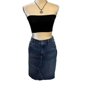 ❌SOLD❌ NWT. Mini Jean Skirt for Women Size 8/29. Zipper and button for closure, 5 pockets design, has loops, medium wash, raw bottom hem, seam design middle front and back. Crop top and necklace are not included. Pictures are part of description.