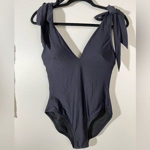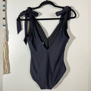 Jcrew black v neck tie strap one piece swimsuit