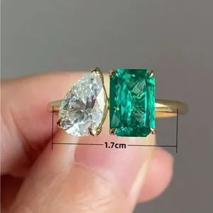 Gorgeous 14K Gold Double Stone Toi Et Moi Emerald Green Ring Mult. Sizes New