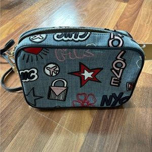 Michael Kors MK Designer Ginmy Denim Graffiti Camera Bag