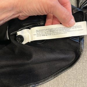 Zara 100% polyurethane black pleather shirt; ruched button front with open collar; button cuff sleeves and finished bottom; super soft! 23” from top