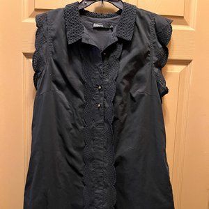 Adorable cotton mini dress from Anthropologie. Excellent condition. Button down front with lace packet. Black. Size L