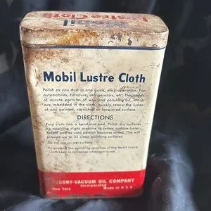 Vintage Mobil Lustre Cloth S/V Design A-381 Socony-Vacuum Oil Company Inc. tin